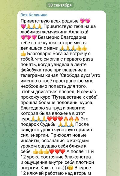 Я прошла множество обучающих программ, но всегда возвращалась к осознанию, что все они лишь подтверждали мои внутренние знания, основанные на чувствовании истины.